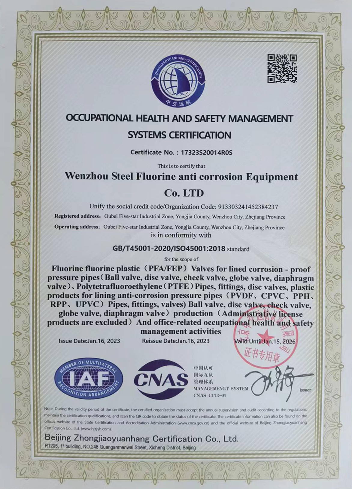 職業(yè)健康安全管理體系認(rèn)證證書 |